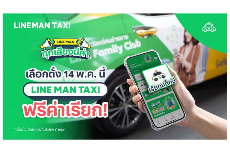 14 พ.ค.นี้ LINE MAN ประกาศงดเก็บค่าเรียกบริการ TAXI จ่ายเพียงค่ามิเตอร์ตามระยะทางจริงที่ใช้บริการ จะเลือกตั้งเขตไหนก็ฟรีค่าเรียก สะดวก ง่าย ปลอดภัย พร้อมหนุนคนไทยออกไปใช้สิทธิ์เลือกตั้ง เพียงเข้าแอป LINE MAN เลือกบริการ TAXI ได้ทุกเขตพื้นที่ในเขตกรุงเทพฯ และพื้นที่ในเขตนนทบุรี ปทุมธานี สมุทรปราการ นครปฐม และสมุทรสาคร เพียงกรอกโค้ด “TAXIVOTE” ใช้บริการได้ที่ https://lineman.onelink.me/1N3T/8pjb1vbq