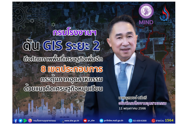 นายจุลพงษ์ ทวีศรี อธิบดีกรมโรงงานอุตสาหกรรม เปิดเผยว่า กรมโรงงานอุตสาหกรรม (กรอ.) จัดทำระบบภูมิสารสนเทศภูมิศาสตร์ (GIS Application) เพื่อจัดเก็บฐานข้อมูลของพื้นที่อุตสาหกรรมในเขตประกอบการเป้าหมาย สร้างแนวทางในการจัดทำแผนพัฒนาพื้นที่อุตสาหกรรมให้มีความเชื่อมโยงในการพัฒนาพื้นที่เศรษฐกิจ โครงข่ายคมนาคม ขนส่งและโครงสร้างพื้นฐานที่มีผลต่อภาคการผลิต การค้า การลงทุน ส่งเสริมและพัฒนาในพื้นที่เขตประกอบการอย่างเหมาะสมด้วยแนวคิดเศรษฐกิจหมุนเวียน พร้อมผลักดันโครงการฯ ระยะที่ 2 เพื่อประโยชน์ในการจัดการพื้นที่อุตสาหกรรมใน 8 เขตประกอบการเป้าหมายได้อย่างมีประสิทธิภาพมากยิ่งขึ้น