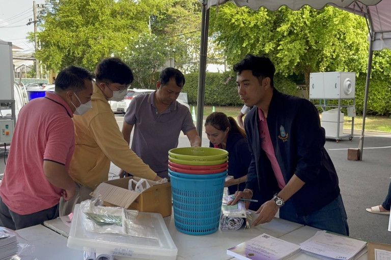 วันที่ 13 พ.ค.66 เวลา 08.00 น.ผู้สื่อข่าวรายงาน ว่า ที่สำนักงานเทศบาลนครภูเก็ต ต.ตลาดใหญ่ อ.เมือง ซึ่งเป็นสถานที่ส่งมอบหีบบัตรเลือกตั้งและวัสดุอุปกรณ์ต่างๆประจำคูหาเลือกตั้งในเขตเลือกตั้งที่ 1 ซึ่งคณะกรรมการประจำหน่วยเลือกตั้งต่างมารับอุปกรณ์การเลือกตั้ง โดยมีเจ้าหน้าที่คอยอำนวยความสะดวก โดยก่อนมอบหีบบัตรเลือกตั้งมีการชี้แจงขั้นตอนและกระบวนการต่างๆให้กับทางคณะกรรมการประจำหน่วยเลือกตั้งรับทราบพร้อมกับมีการตรวจความเรียบร้อยของอุปกรณ์ที่ใช้ในการเลือกตั้งก่อนส่งมอบ ตลอดจนเจ้าหน้าที่ยังได้ชี้แจ้งอุปกรณ์ที่ทุกหน่วยเลือกตั้งจะต้องได้รับ