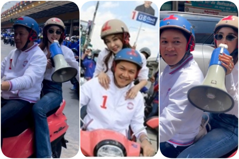 แม่มาจ้าาาา ... เมื่อนางร้ายหน้าสวย “เป้ย - ปานวาด เหมมณี บุญยรัตกลิน” ทุ่มสุดตัวแปลงร่างเป็น “อีกี้” สุดแซ่บ!!! ซ้อนท้ายคุณสามี “ป๊อป - นิธิ บุญยรัตกลิน” ซิ่งหาเสียงโค้งสุดท้าย กับคาราวานมอเตอร์ไซค์กว่าครึ่งร้อย งานนี้สาวเป้ย ยังควงโทรโข่งพูดหาเสียงท้าแดดท่ามกลางอุณหภูมิที่ร้อนเวอร์ ช่วยคุณสามีป๊อปสุดฤทธิ์ เห็นทีจะได้ตำแหน่งภรรยาดีเด่นไปครอง เพราะซัพพอร์ตสามีชนิดไม่ห่วงสวย