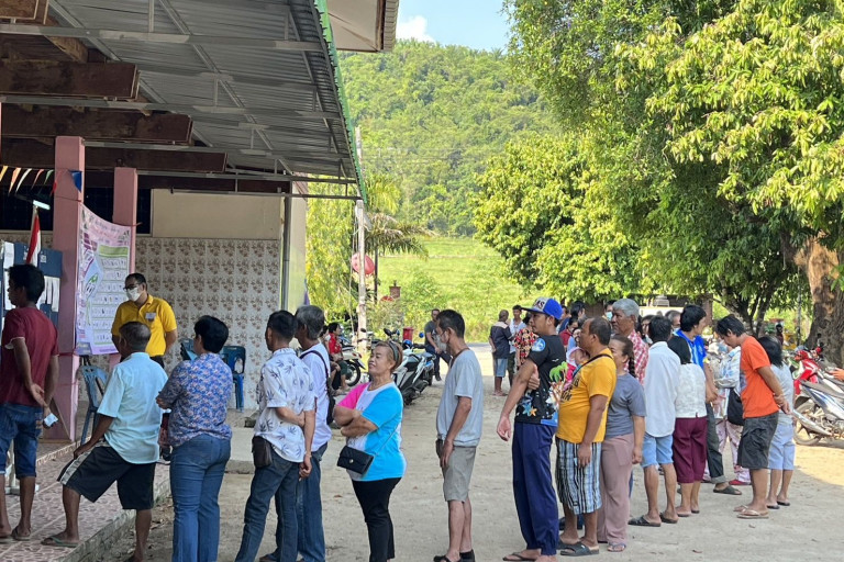 วันที่ 14 พ.ค.66 เวลา 08.00น.ผู้สื่อข่าวรายงาน ว่า ตั้งแต่เปิดหีบเลือกตั้งลงคะแนนเลือกสมาชิกสภาผู้แทนราษฎรแบบแบ่งเขตเลือกตั้ง และเลือกสมาชิกสภาผู้แทนราษฎรแบบบัญชีรายชื่อ หรือเลือกพรรคการเมือง ในพื้นที่เขต 2 มีประชาชนในพื้นที่บ้านบางมรวน หน่วยเลือกตั้งที่ 8 ต.บางม่วง อ.ตะกั่วป่า จ.พังงา ออกมาใช้สิทธิ์เลือกตั้งบรรยากาศเป็นไปอย่างคึกคัก