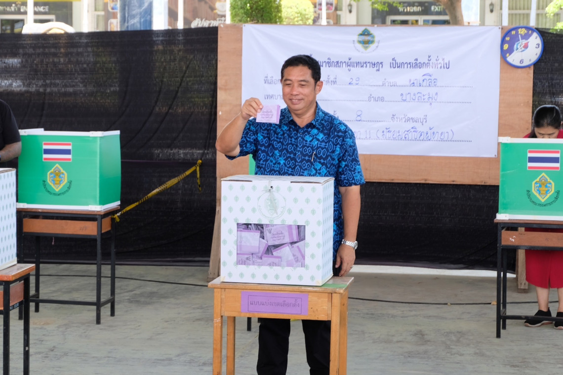 วันที่ 14 พ.ค.66 นายสนธยา คุณปลื้ม อดีตรัฐมนตรีว่าการกระทรวงท่องเที่ยวและกีฬา ได้เดินทางมาใช้สิทธิเลือกตั้งที่หน่วยเลือกตั้งที่ 29 เขตเลือกตั้งที่ 8 จ.ชลบุรี ในลำดับเลือกตั้งที่ 226 ณ.โรงเรียนเมืองพัทยา 11 (มัธยมสาธิตพัทยา) ต.หนองปรือ อ.บางละมุง จ.ชลบุรี โดยได้เข้าคิวต่อแถวเข้าคูหาพร้อมกับพ่อแม่พี่น้องประชาชนที่ทยอยมาเลือกตั้งตั้งแต่เช้า