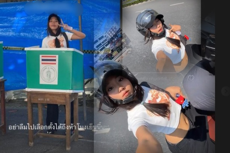 ด้าน แร็ปเปอร์สาว "มิลลิ" ดนุภา คณาธีรกุล โพสต์ภาพสวมบทเป็นอีกี้ ซ้อนมอเตอร์ไซค์ไปเลือกตั้ง ผ่านอินสตาแกรมสตอรี่ @phuckitol พร้อมระบุข้อความว่า...