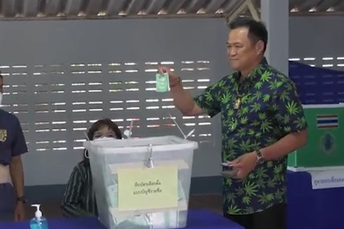 โดยนายอนุทิน สวมเสื้อลายกัญชาสีเขียว เดินลงจากรถ เพื่อใช้สิทธิ์เลือกตั้ง โดยไม่ให้สัมภาษณ์แต่อย่างใด เนื่องจากเกรงว่าจะผิดกฎหมายเลือกตั้ง หลังจากนี้จะรอลุ้นผลการเลือกตั้งที่จังหวัดบุรีรัมย์