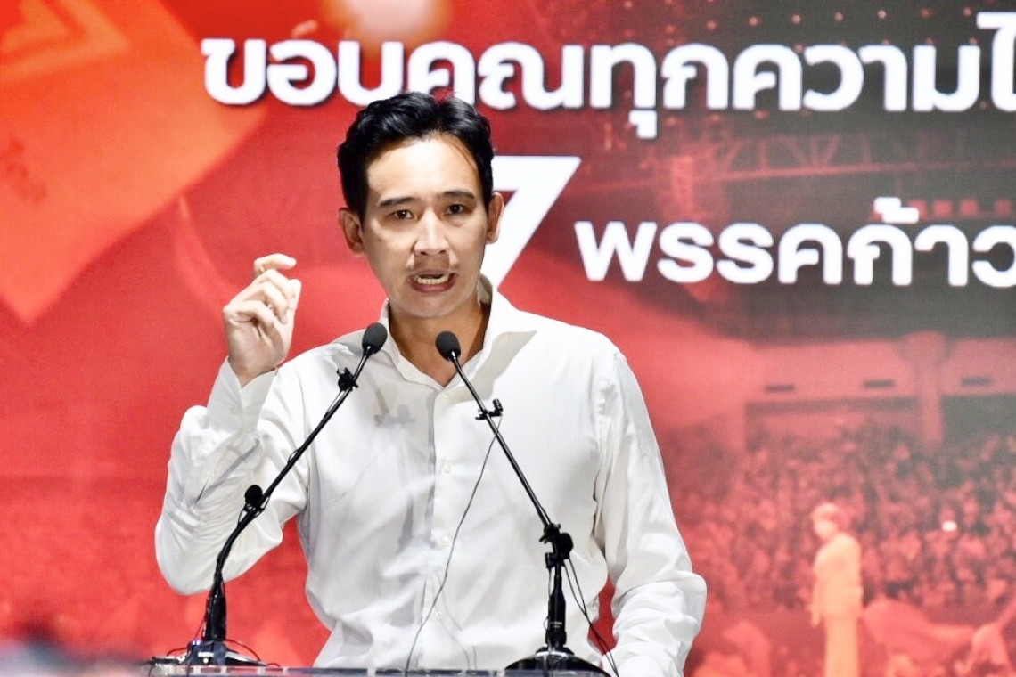 วันที่ 14 พ.ค.66 เมื่อเวลา 22.00น. ที่พรรคก้าวไกล นายพิธา ลิ้มเจริญรัตน์ หัวหน้าพรรคก้าวไกล แถลงอีกครั้งว่า ขอบคุณประชาชนให้ความไว้วางใจพรรคก้าวไกล จะตั้งใจทำงานเต็มที่ แม้คะแนนยังนับไม่หมด ตอนนี้ขอประกาศว่า คะแนนรวมก้าวไกลน่าจะทะลุเกิน 100ที่นั่งไปแล้ว จากการโทร.ตามและเช็กแต่ละบอร์ดทั่วประเทศ มั่นใจชนะขาดแล้ว 72เขต อีก50เขตใกล้นับเสร็จมีคะแนนนำ รวม 120เขต ส่วนบัญชีรายชื่ออยู่ที่ 35-40เขต มั่นใจจะบรรลุเป้าหมายหาเสียงเลือกตั้งเกิน 100เสียง และมีทิศทางที่ดีจะทะลุไปถึง 160เขตได้ หรืออาจทะลุมากกว่านั้นก็ได้ ส่วนผลการตั้งรัฐบาลเสียงข้างน้อยแทบไม่มีเหลือแล้ว พรรคที่คะแนนเกิน 100แล้ว มีแค่พรรคก้าวไกล กับพรรคเพื่อไทย พรรครัฐบาลเดิมน่าจะยากมีเสียงเกิน 100 ไม่น่าจะมีรัฐบาลข้างน้อย คาดว่าจะใช้เวลาอีกไม่นานในการตั้งรัฐบาล จุดยืนก้าวไกลคือ มีลุงไม่มีเรา ไม่มีรวมไทยสร้างชาติและพลังประชารัฐในการตั้งรัฐบาลชองพรรคก้าวไกล และจะต้องมีเอ็มโอยูตั้งรัฐบาล