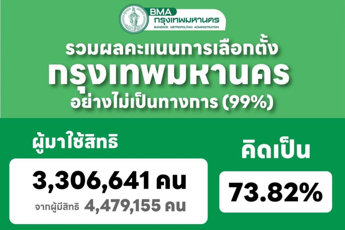 เมื่อเวลา 11.00 น. วันที่ 15 พ.ค. ที่ศาลาว่าการกทม. ผู้สื่อข่าวรายงานว่า สำนักงานประชาสัมพันธ์ ได้เผยแพร่ข้อมูลจากสำนักงานคณะกรรมการการเลือกตั้ง (กกต.) รวมผลคะแนนการเลือกตั้ง กรุงเทพมหานคร อย่างไม่เป็นทางการ(99%)