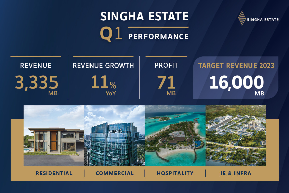 บริษัท สิงห์ เอสเตท จำกัด (มหาชน) ประกาศกำไรสำหรับไตรมาส 1 ปี 2566 จำนวน 71 ล้านบาท พลิกจากขาดทุนปกติ 126 ล้านบาทในช่วงเดียวกันของปีก่อน พร้อมกางแผนขยายธุรกิจ ปี 2566 เดินหน้าขับเคลื่อนผลประกอบการให้โตต่อเนื่อง ด้วยการเปิดตัวโครงการที่พักอาศัย จำนวน 5 โครงการ หนุนด้วยกลุ่มธุรกิจนิคมอุตสาหกรรม และอสังหาริมทรัพย์เพื่อการพาณิชย์ ที่ยังคงเดินหน้าตามแผนงานอย่างต่อเนื่อง