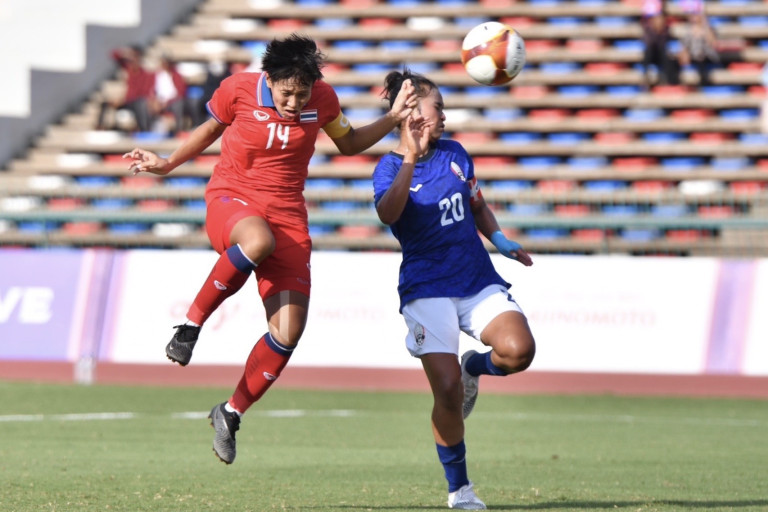 วันที่ 15 พ.ค. 2566 การแข่งขันฟุตบอลหญิงซีเกมส์ รองชิงเหรียญทองแดง ที่ โอลิมปิก สเตเดียม ระหว่าง "ทัพชบาแก้ว" ฟุตบอลหญิงทีมชาติไทย ลงสนามพบกับ "เจ้าภาพ" กัมพูชา