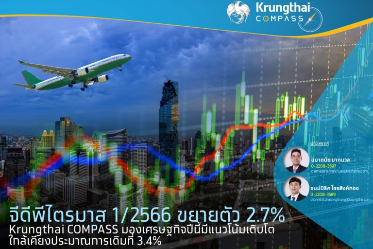 Krungthai COMPASS คงมุมมองเศรษฐกิจปีนี้มีแนวโน้มเติบโตได้ใกล้เคียงประมาณการเดิมที่ 3.4% ประเมินว่าเศรษฐกิจจะได้รับปัจจัยสนับสนุนจากการบริโภคภาคเอกชนที่อาจเติบโตต่อเนื่องจากแรงส่งในไตรมาสที่ 1 ซึ่งเติบโตดีและมีแนวโน้มขยายตัวต่อเนื่อง สอดคล้องกับการท่องเที่ยวที่ทยอยฟื้นตัวโดยเฉพาะนักท่องเที่ยวสัญชาติจีน อย่างไรก็ตามเศรษฐกิจอาจถูกกดดันจากการลงทุนภาคเอกชนซึ่งชะลอตัวท่ามกลางเศรษฐกิจโลกที่เปราะบาง