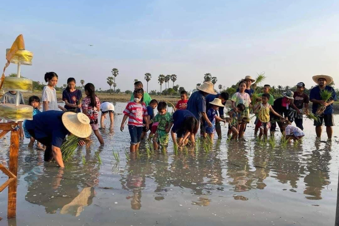 นายอำเภอโพธิ์ทอง จับมือภาคีเครือข่ายจัดกิจกรรมวันแรกนาขวัญ ร่วมดำนาหว่านข้าว และแจกเมล็ดพันธุ์ข้าวพระราชทาน ปลูกฝังเยาวชนให้เรียนรู้ถึง คุณค่าในวิถีพอเพียง และวัฒนธรรมไทยอันดีงาม มุ่งมั่นขับเคลื่อนพัฒนาสร้าง "หมู่บ้านยั่งยืน" เพื่อความสุขที่ยั่งยืนของประชาชน