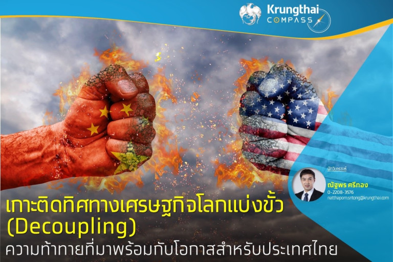 Decoupling นำมาซึ่งความท้าทายสำหรับไทย เช่น ความท้าทายในการรักษาสมดุลความสัมพันธ์กับสหรัฐฯ และจีน และการส่งออกสินค้าที่เป็นวัตถุดิบในการผลิตเพื่อส่งออกต่อไปยังประเทศขั้วขัดแย้ง อย่างไรก็ดี นับเป็นโอกาสในแง่การดึงดูดทุนต่างชาติที่ต้องการย้ายฐานการผลิตโดยเฉพาะในธุรกิจอิเล็กทรอนิกส์และเทคโนโลยี รวมถึงโอกาสในการส่งออกสินค้าไปทดแทนประเทศขั้วขัดแย้ง เช่น ส่งออกเครื่องใช้ไฟฟ้าไปสหรัฐฯ ทดแทนการนำเข้าจากจีน