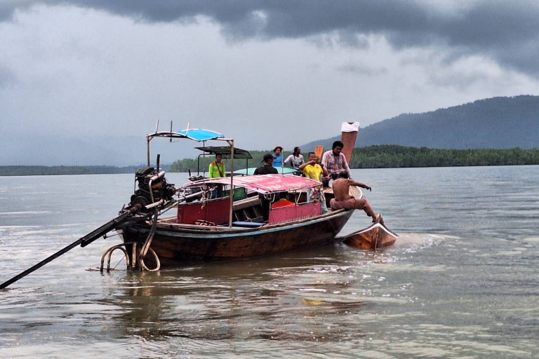 เบื้องต้นทราบว่าเป็นเรือนำเที่ยวจากบ้านสามช่อง ต.กะไหล อ.ตะกั่วทุ่ง นำนักท่องเที่ยวสัญชาติไอร์แลนด์ 2 คน สวิตเซอร์แลนด์ 1 คน ฟิลิปปินส์ 2 คน และไกด์ชาวไทย 1 คนไปเที่ยวชมจุดท่องเที่ยวในอ่าวพังงา ขณะที่กำลังเดินทางจากท่าเรือได้ประมาณ1ไมล์ทะเล คนขับเรือได้เสียหลักตกจากเรือ จึงทำให้เรือเสียการควบคุมและจมลง แต่นักท่องเที่ยวทุกคนสวมเสื้อชูชีพจึงไม่ได้รับอันตราย ซึ่งทางหน่วยงานที่เกี่ยวจะได้ทำการสอบสวนหาสาเหตุของอุบัติเหตุครั้งนี้ต่อไป