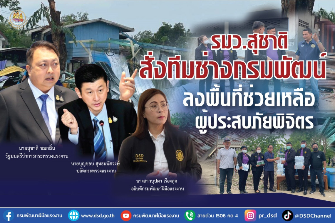 นายสุชาติ ชมกลิ่น รัฐมนตรีว่าการกระทรวงแรงงาน เปิดเผยว่า จากเหตุการณ์วาตภัยที่จังหวัดพิจิตรเมื่อวันที่ 22 พฤษภาคม 2566 เวลาประมาณ 18.00 น. ณ โรงเรียนเนินปอ ส่งผลให้โครงสร้างหลังคาเมทัลชีทซึ่งตั้งอยู่ภายในโรงเรียนวัดเนินปอพังถล่ม ขณะเกิดเหตุมีนักเรียนที่มาเล่นกีฬาฟุตบอล หลบฝนอยู่ภายในโดมดังกล่าวเป็นจำนวนมาก ล่าสุด (23 พ.ค.66) มีรายงานผู้เสียชีวิตรวม 7 ราย และผู้บาดเจ็บรวม 23 ราย บ้านเรือนได้รับความเสียหาย 6 หมู่บ้านกว่า 100 หลังคาเรือน ทั้งนี้ ได้มอบหมายให้กรมพัฒนาฝีมือแรงงานประสานหน่วยงานในพื้นที่เร่งให้ความช่วยเหลือประชาชนที่ได้รับความเดือดร้อนจากเหตุดังกล่าวแล้ว