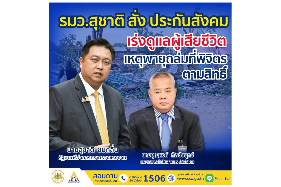 "รมว.สุชาติ" สั่งประกันสังคมเร่งดูแลผู้เสียชีวีต เหตุพายุถล่มที่พิจิตร ตามสิทธิ์