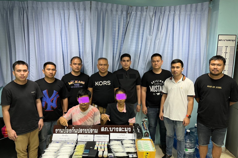 ตร.บางละมุง รวบสองผัวเมีย ซิ่งเก๋งส่งยานรก เครือข่าย “หิน ตลิ่งชัน” เอเย่นต์ตัวเอ้ บุกบ้านตรวจยึดยาเสพติดยอดฮิต ระบาดกลุ่มนักเที่ยวสายปาร์ตี้เพียบ