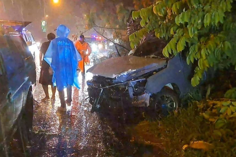 เมื่อเวลา 20.00 น.วันที่ 28 พ.ค.2566 ร.ต.อ.รัชนินท์ เกษมสิทธิ์ชัยกุล ร้อยเวร สภ.โพธาราม รับแจ้งมีเหตุรถยนต์เสียหลักชนต้นไม้ข้างทางมีผู้ได้รับบาดเจ็บสาหัสติดภายในซากรถ เหตุเกิดบนถนนเพชเกษม ขาเข้าตัวเมืองราชบุรี โค้งบานลาน ม.2 ต.ดอนทราย อ.โพธาราม จึงเดินทางไปตรวจสอบพร้อมประสานรถอุปกรณ์ตัดถ่างกู้ภัยสว่างราชบุรี และรถกู้ชีพโรงพยาบาลโพธาราม ที่เกิดพบรถยนต์กระบะอีซูซุสีเทาดำแบบมีคอก ทะเบียน ผข-2719 สุพรรณบุรี บริเวณฝั่งประตูด้านคนขับถูกชนจนพังยับ มีมะม่วงตกเกลื่อนพื้นในซากรถพบผู้บาดเจ็บเป็นชาย1รายอาการสาหัส เจ้าหน้าที่ได้ใช้อุปกรณ์ตัดถ่างท่ามกลางสายฝนที่ตกลงมาอย่างหนัก ใช้เวลาประมาณ20นาทีสามารถนำคนเจ็บออกมาได้ พร้อมส่งต่อให้กับรถกู้ชีพโรงพยาบาลโพธาราม