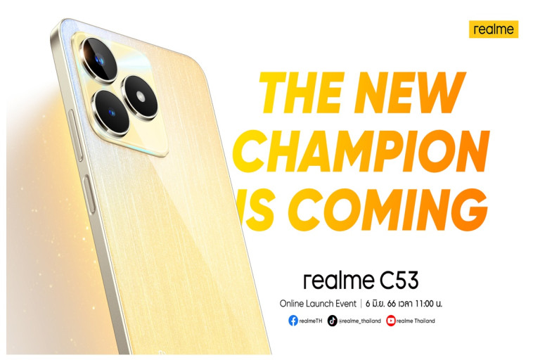 แฟน realme ห้ามพลาดกับไลฟ์เปิดตัว realme C53 ในวันที่ 6 มิถุนายน 2566 ผ่านช่องทาง Facebook Fanpage : realme TH, Youtube : realme Thailand และ Tiktok : realme_Thailand ได้ตั้งแต่เวลา 11.00 น.เป็นต้นไป ทั้งนี้เตรียมพบกับนักแสดงซีรีส์วายดาวรุ่งอย่างคุณแบงค์ ณฐวัฒน์และคุณเอิร์ธ ชิษณุพงศ์จากซีรีส์เรื่องราชาวิหค ที่จะมาแบ่งปันประสบการณ์การใช้งาน realme C53 ในไลฟ์สไตล์ของตนเอง และคุณตั้ม จากเพจไอทีชื่อดัง GUZAP ที่จะมาเปิดเผยสเปคการใช้งานกันแบบจุใจ พร้อมด้วยน้อง ๆ จาก AU Ambassadors มหาวิทยาลัยอัสสัมชัญ ทึ่จะมาเล่าเรื่องราวการใช้งานสไตล์วัยรุ่นนักศึกษา ว่าเทคโนโลยีจะผสานรวมเข้ากับการศึกษาได้อย่างไร นอกจากนี้ภายในไลฟ์ยังมีกิจกรรมให้เหล่าแฟน ๆร่วมสนุกพร้อมลุ้นรับของรางวัลสุดพิเศษอีกด้วย เรียกได้ว่างานนี้แฟนเรียลมีห้ามพลาด
