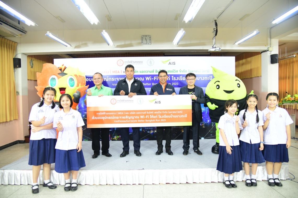 MEA ร่วมกับ กทม. และ AIS ส่งมอบอุปกรณ์อินเตอร์เนตไร้สาย (Wi-Fi) ให้แก่โรงเรียนบ้านบางกะปิ จากการระดมทุนในกิจกรรม BETTER BANGKOK RUN 2023 : วิ่งเพื่อกรุงเทพที่ดีกว่า