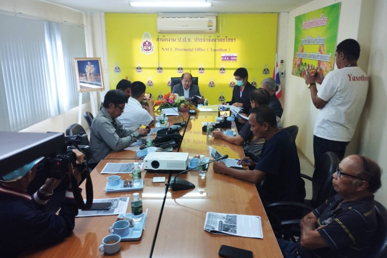 วันที่ 31 พ.ค.66 เวลา 10.00 น. ที่ห้องประชุมสำนักงาน ป.ป.ช.จังหวัดยโสธร ชั้น 4 ถนนอรุนประเสริฐ ตำบลตาดทอง อำเภอเมืองยโสธร จังหวัดยโสธร นายอดุลย์ วันดี ผู้อำนวยการสำนักงานป้องกันและปราบปรามการทุจริต ประจำจังหวัดยโสธร พร้อมเจ้าหน้าที่ได้ร่วมกันแถลงข่าวผลการดำเนินการงานตามโครงการรณรงค์สร้างกระแสต่อต้านการทุจริตและรณรงค์สร้างกระแสต่อต้านทุจริต เพื่อให้สื่อมวลชนรับรู้ถึงบทบาทหน้าที่ผลงานที่สำคัญของสำนักงาน ป.ป.ช. ประจำจังหวัดยโสธร เพื่อนำไปขยายผลเผยแพร่ทางสื่อไปสู่พี่น้องประชาชนได้รับทราบโดยมีสื่อมวลชนร่วมรับฟังการแถลงข่าวและชักถามข้อมูลในครั้งนี้