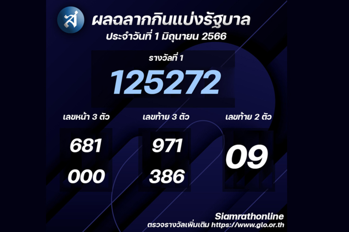 ผลสลากกินแบ่งรัฐบาลงวดประจำวันที่ 1 มิถุนายน 2566 รางวัลที่ 1 : 125272