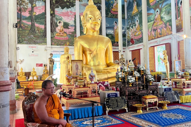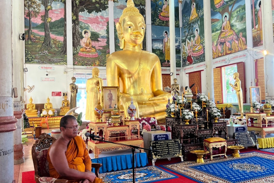 วันที่ 2 มิ.ย.66 ที่วิหารหลวงพ่อโต วัดมหาพุทธาราม ต.เมืองเหนือ อ.เมือง จ.ศรีสะเกษ พระครูศรีมงคลปริยัติกิจ เจ้าคณะจังหวัดศรีสะเกษ ได้เปิดการอบรมปฏิบัติธรรมะให้กับคณะอุบาสกอุบาสิกาที่นุ่งขาวห่มขาวมาร่วมกันปฏิบัติธรรมเบื้องหน้าหลวงพ่อโต พระพุทธรูปศักดิ์สิทธิ์คู่เมืองศรีสะเกษ ในช่วงเทศกาลวันวิสาขบูชาจำนวนมาก ผู้มาปฏิบัติธรรมทุกคนต่างพากันสงบกาย วาจา ใจ ตั้งอธิษฐานจิตในการที่จะประพฤติปฏิบัติตนเป็นพุทธมามกะอย่างเคร่งครัด ซึ่งเจ้าคณะจังหวัดศรีสะเกษ ได้แสดงธรรมถึงการประพฤติตนเป็นชาวพุทธที่ดี ให้ตั้งมั่นในพระธรรมคำสอนขององค์สมเด็จพระสัมมาสัมพุทธเจ้า เพื่อที่จะได้ช่วยให้จิตใจสงบเยือกเย็น ให้มีความสุข ให้มีความเจริญก้าวหน้าในหน้าที่การงาน ครอบครัวเป็นสุข เป็นพลเมืองดีของประเทศชาติต่อไป