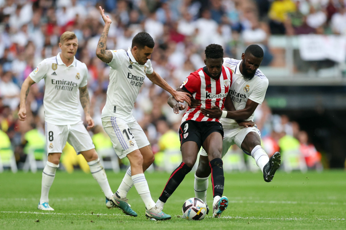 ที่สนาม ซานติอาโก้ เบอร์นาเบว ประเทศสเปน ในการแข่งขันฟุตบอลลาลีก้า ฤดูกาล 2022-2023 คืนวันที่ 4 มิ.ย.66 ระหว่างทีม "เรอัล มาดริด" พบกับทีม "แอธเลติก บิลเบา" เริ่มเกมการแข่งขัน นาทีที่ 8 ช่วงแรกเกมสูสี บิลเบา บุกจนได้เตะมุม นิโก้ เปิดไปเสาไกล อินญากี้ โขกตั้งกลับมาโดนมือ โครส ผู้ตัดสินเป่าจุดโทษ เบสก้า สังหารยิงเข้ามุมแล้วแต่ คูร์กตัวส์ ยอดเยยี่ยมกว่าบินปัดได้ นาทีที่ 25 มาดริด มีโอกาสครั้งแรกจนได้ วินิซิอุส ลากเลื้อยตัดยิงหน้าเขตโทษ บอลแฉลบเล็กน้อยเข้าซอง ซิมอน เซฟไม่ยาก นาทีที่ 30 ผ่านไปครึ่งชั่วโมงเป็น บิลเบา ครองบอลเหนือกว่าจังหวะนี้ ยูริ รับบอลจาก เอร์เรร่า แล้วกดเต็มข้อด้วยซ้ายจากนอกกรอบ คูร์กตัวส์ ปัดออกหลังเสียแค่เตะมุม