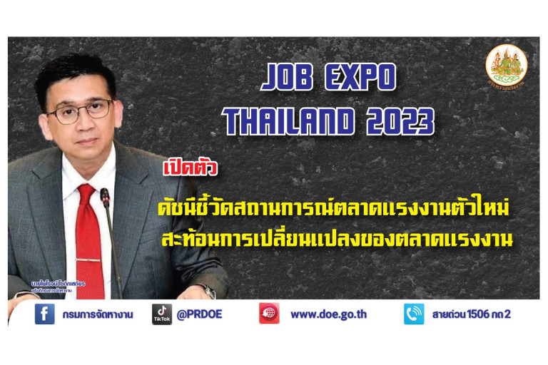 นายไพโรจน์ โชติกเสถียร อธิบดีกรมการจัดหางาน เปิดเผยว่า งาน JOB EXPO THAILAND 2023 ที่จะจัดขึ้นวันที่ 8 – 10 มิถุนายน 2566 ที่ศูนย์นิทรรศการและการประชุมไบเทค บางนา Hall EH 100 – 102 กรุงเทพมหานคร นอกจากมีการจัดกิจกรรมเพื่อสร้างโอกาสให้ผู้สมัครงาน นายจ้าง/สถานประกอบการ ได้พบกันและพิจารณาคัดเลือกกันโดยตรง และส่งเสริมการประกอบอาชีพอิสระที่อยู่ในความสนใจ ความต้องการของกลุ่มคนรุ่นใหม่ เพื่อนำไปเป็นทางเลือกในการประกอบอาชีพ หรือสร้างรายได้เสริมแล้ว ยังมีโซนสำคัญคือ โซน “ส่งเสริมและสนับสนุนการมีงานทำ” ที่รวบรวมกิจกรรมเพื่อเตรียมความพร้อมเข้าสู่ตลาดแรงงาน โดยจัดแสดงสถานการณ์ตลาดแรงงานในปัจจุบัน ทิศทางความต้องการแรงงานในอนาคต พร้อมเปิดตัวดัชนีชี้วัดสถานการณ์ตลาดแรงงานตัวใหม่ ชื่อว่า ตำแหน่งงานต่อผู้ว่างงาน(Vacancy to Unemployment Ratio) ซึ่งใช้วัดความตึงตัวของตลาดแรงงาน ช่วยสะท้อนการเปลี่ยนแปลงของตลาดแรงงาน และส่งสัญญาณเตือนให้เตรียมรับมือกับวิกฤติเศรษฐกิจที่อาจจะเกิดขึ้น
