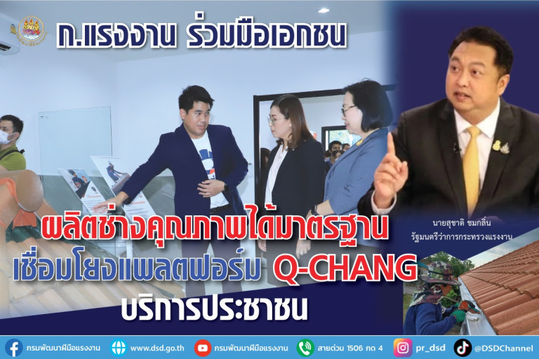 นางสาวบุปผา เรืองสุด อธิบดีกรมพัฒนาฝีมือแรงงาน กล่าวว่า นายสุชาติ ชมกลิ่น รมว.แรงงาน มอบหมายให้มาเป็นประธานเปิดศูนย์ฝึกอบรมช่าง Q-CHANG Academy ที่อาคาร SCG HOME Experience สาขาเลียบทางด่วนเอกมัย-รามอินทรา กรุงเทพมหานคร เป็นการยกระดับความร่วมมือให้มีมากขึ้น โดยทั้งสองหน่วยงานจะร่วมกันใช้ศูนย์ฝึกอบรมในการพัฒนาทักษะฝีมือแรงงานและจัดฝึกอบรมหลักสูตรต่างๆให้แก่ผู้ประกอบอาชีพช่างก่อสร้าง ช่างไฟฟ้า และช่างประปา เช่น การสำรวจและการซ่อมหลังคารั่วเฉพาะจุด การติดตั้งหลังคาเมทัลชีทบนหลังคาลอนคู่เดิม เป็นต้น ซึ่งเป็นหลักสูตรที่สามารถให้บริการของประชาชนและแก้ปัญหาความเสียหายของที่พักอาศัยได้เป็นอย่างดี โดยตั้งเป้าหมายจัดฝึกอบรมจำนวน 2,000 คนต่อปี