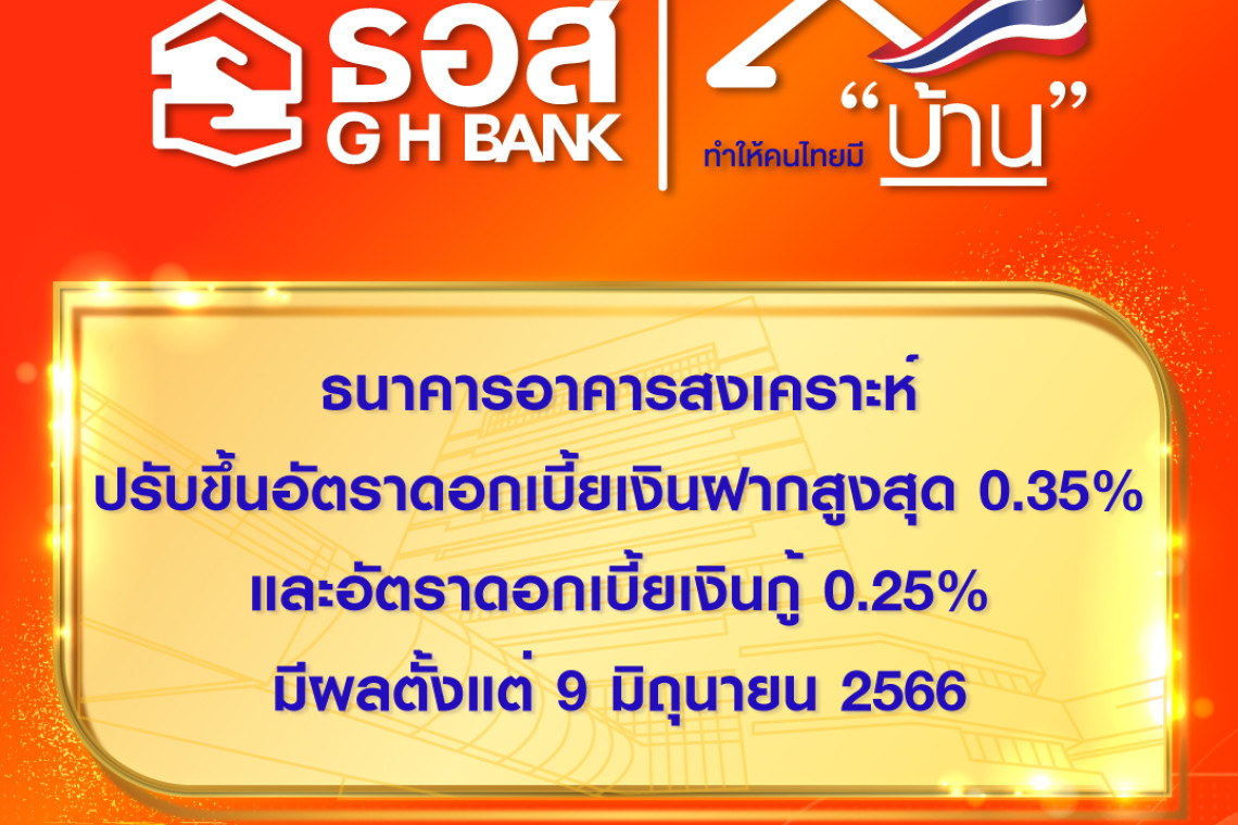 นายกฤษณ์ เสสะเวช กรรมการธนาคาร และรักษาการกรรมการผู้จัดการ ธนาคารอาคารสงเคราะห์ (ธอส.) เปิดเผยว่า ตามที่คณะกรรมการนโยบายการเงิน (กนง.) เมื่อวันที่ 31 พฤษภาคม 2566 มีมติปรับขึ้นอัตราดอกเบี้ยนโยบาย 0.25% ต่อปี จาก 1.75% ต่อปี เป็น 2.00% ต่อปี ซึ่งเป็นการปรับขึ้นตามภาวะเศรษฐกิจไทยที่มีแนวโน้มขยายตัวต่อเนื่อง จากภาคการท่องเที่ยวและการบริโภคภาคเอกชน รวมถึงการส่งออกสินค้ามีแนวโน้มฟื้นตัวอย่างค่อยเป็นค่อยไป ดังนั้น เพื่อให้สอดคล้องกับการปรับขึ้นอัตราดอกเบี้ยนโยบายของธนาคารแห่งประเทศไทย ธอส. จึงมีมติให้ ปรับขึ้นอัตราดอกเบี้ยเงินฝากออมทรัพย์พิเศษ และเงินฝากประจำ 0.05-0.35% ต่อปี เพื่อส่งเสริมการออมและให้ผู้ฝากเงินได้รับประโยชน์ตามทิศทางอัตราดอกเบี้ยขาขึ้น และปรับขึ้นอัตราดอกเบี้ยเงินกู้ทุกประเภท 0.25% ต่อปี ซึ่งเป็นการปรับเพิ่มขึ้นแบบค่อยเป็นค่อยไป เพื่อช่วยเหลือลูกค้ากลุ่มเปราะบางให้ได้รับผลกระทบน้อยที่สุด โดยเห็นได้จากอัตราดอกเบี้ยเงินกู้ของ ธอส. ยังอยู่ในระดับต่ำเมื่อเทียบกับอัตราดอกเบี้ยของธนาคารพาณิชย์ พร้อมกันนี้ ธอส. ในฐานะสถาบันการเงินของรัฐ ที่มีพันธกิจ "ทำให้คนไทยมีบ้าน" ยังมีสินเชื่ออัตราดอกเบี้ยต่ำ สำหรับผู้ที่ต้องการมีที่อยู่อาศัยเป็นของตนเองอีกด้วย โดยการปรับขึ้นอัตราดอกเบี้ยดังกล่าวให้มีผลบังคับใช้ตั้งแต่วันที่ 9 มิถุนายน 2566 เป็นต้นไป