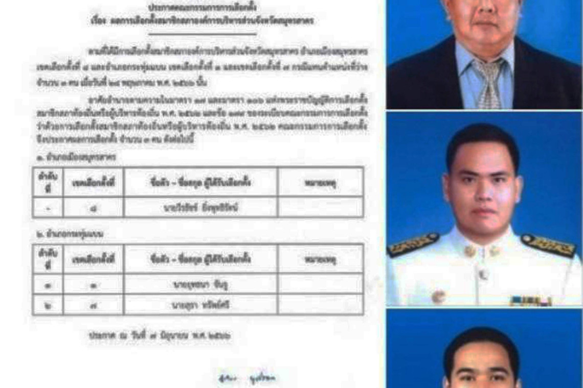 ผู้สื่อข่าวรายงานว่า คณะกรรมการเลือกตั้งประจำ อบจ.สมุทรสาคร พร้อมด้วย กกต.จังหวัดฯนำโดยนาย พงษ์พัชน์ สายช่างทอง ผอ.กต. ได้ประกาศรับรองผลการเลือกตั้ง “ซ่อม”ของสมาชิกสภาองค์การบริหารส่วนจังหวัด (อบจ.) สมุทรสาคร อย่างเป็นทางการทั้ง 3เขต โดยมีรายนาม ดังนี้
