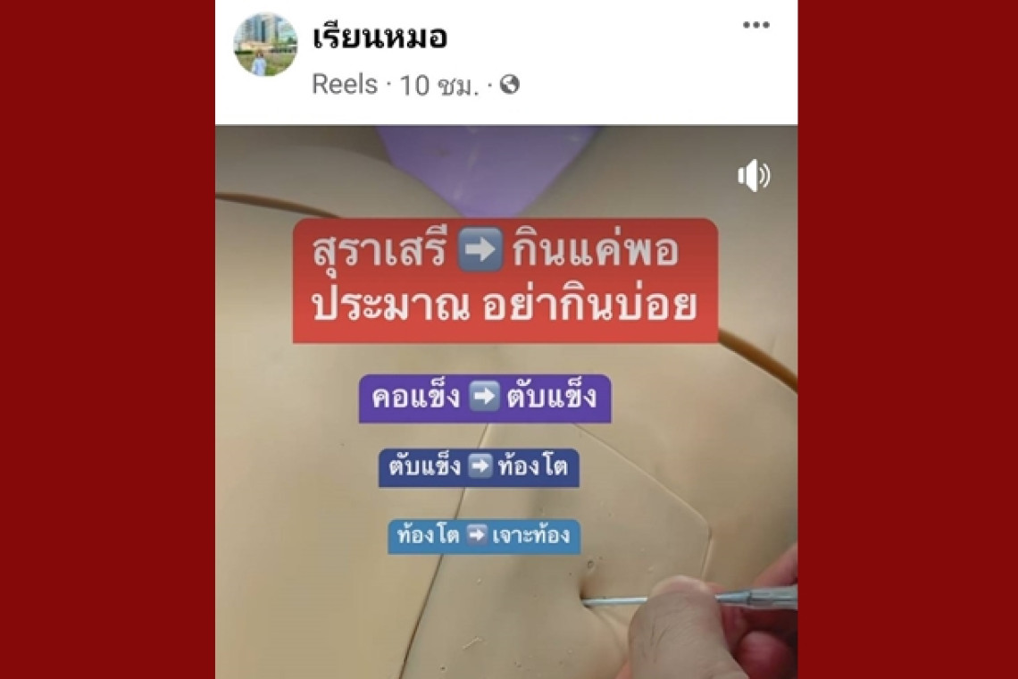 เพจเรียนหมอ ออกมาโพสต์เตือน สุราเสรีกินแค่พอประมาณ หากกินมากไปจะทำให้เสี่ยงต่อการเป็นโรคตับแข็ง ต้องทำการรักษาด้วยการเจาะท้อง ชี้แนวคิดเรื่องนโยบายลดการผูกขาดเป็นเรืองที่ดี แต่ต้องมีการให้ความรู้ไปด้วย เพราะอาจมีนักดื่มหน้าใหม่เพิ่มขึ้นตามมาด้วยเช่นกัน