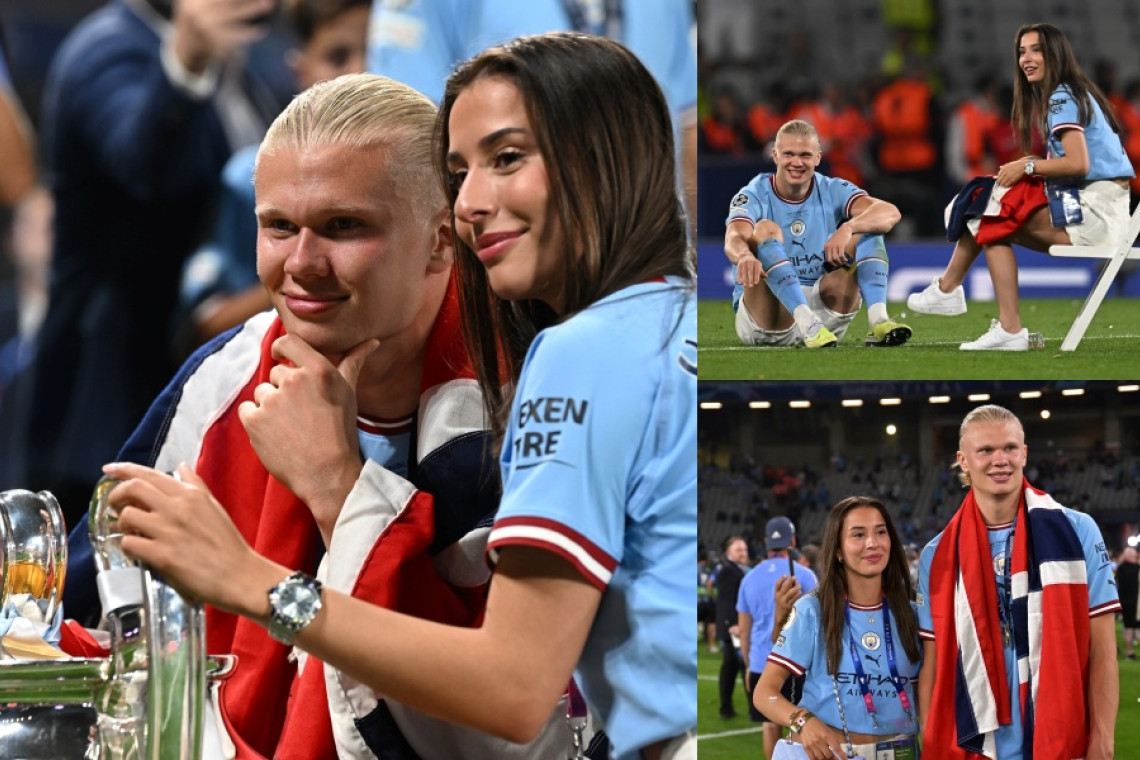 เมื่อวันที่ 11 มิ.ย.66 "เออร์ลิ่ง ฮาลันด์" ยอดกองหน้าของทีมแมนเชสเตอร์ ซิตี้ ยอดทีมในศึกพรีเมียร์ลีก ประเทศอังกฤษ ควงแฟนสาวสวย "อิสซาเบล โยฮันเซ่น" ซึ่งเป็นนางแบบสาวชาวนอร์เวย์ ร่วมถ่ายรูปกับถ้วยรางวัล ยูฟ่า แชมเปี้ยนส์ลีก ที่สนาม อาตาเติร์ก โอลิมปิยัต สตาดี้ ประเทศตุรกี ภายหลังเฉือนชนะ "อินเตอร์ มิลาน" ทีมดังในศึกกัลโช่เซเรียอา ประเทศอิตาลี 1-0 เมื่อคืนวันที่ 10 มิ.ย.66 ที่ผ่านมา