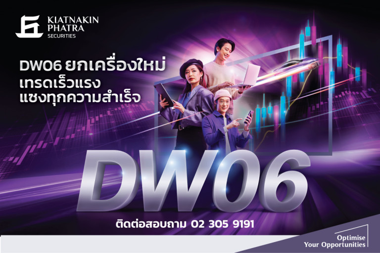 ทั้งนี้ปัจจุบัน บล.เกียรตินาคินภัทรออกและเสนอขาย DW06 ทั้งหมด 217 ซีรีส์ ครอบคลุม 91 หุ้นอ้างอิง ครบเกือบทุกหลักทรัพย์ใน SET100 (ข้อมูล ณ วันที่ 19 พ.ค. 2566) โดยผลิตภัณฑ์ของ DW06 ส่วนใหญ่มีอัตราทด หรือ Effective Gearing ที่ค่อนข้างสูง ซึ่งตอบโจทย์กับผู้ลงทุนที่ต้องการผลตอบแทนที่สูงกว่า ในขณะที่สามารถรับความเสี่ยงสูงได้ นอกจากนี้ยังมีเครื่องมือในการวัดความแกว่งตัวด้านราคา หรือ Sensitivity ใกล้กับ 1 ที่ทำให้การเคลื่อนไหวราคา DW เปลี่ยนไปตามราคาหุ้นอ้างอิงแบบช่องต่อช่อง ซึ่งบล.เกียรตินาคินภัทรตั้งใจคัดสรรมาเพื่อนักลงทุนสายเทรด DW โดยเฉพาะ ผู้สนใจสามารถดูรายละเอียดโปรโมชันของ DW06 และตารางราคา หรือ ติดตามข่าวสารเพิ่มเติมได้ที่ https://dw06.kkpfg.com/