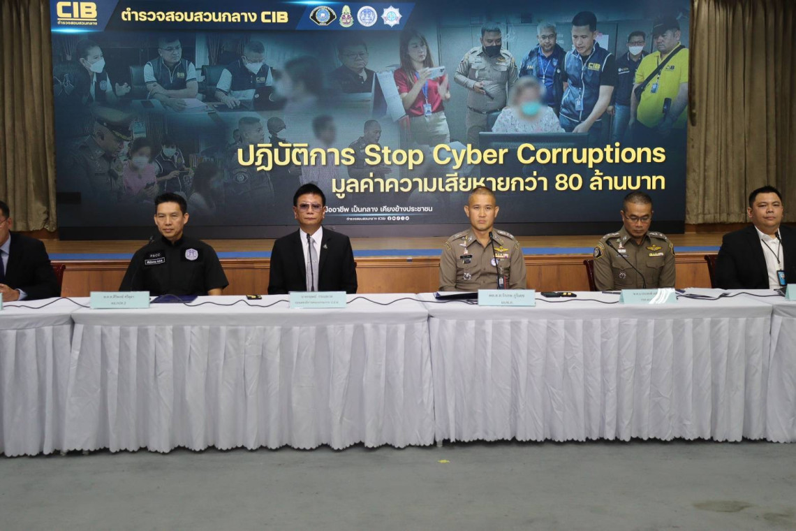 วันที่ 14 มิ.ย.66 ที่กองบัญชาการตำรวจสอบสวนกลาง ผู้สื่อข่าวรายงานว่า พล.ต.ท. จิรภพ ภูริเดช ผู้บัญชาการตำรวจสอบสวนกลาง และนายกฤษณ์ กระแสเวส รองเลขาธิการคณะกรรมการ ป.ป.ท. แถลงผลการจับกุมของ กองบังคับการป้องกันปราบปรามการทุจริตและประพฤติมิชอบ หรือ บก.ปปป.ร่วมแถลงข่าวเปิดปฏิบัติการ stop cyber corruptions จับกุมเจ้าหน้าที่องค์กรปกครองส่วนท้องถิ่น 5 แห่งยักยอกเงินหลวงผ่านระบบอิเล็กทรอนิกส์รวมกว่า 80 ล้านบาท