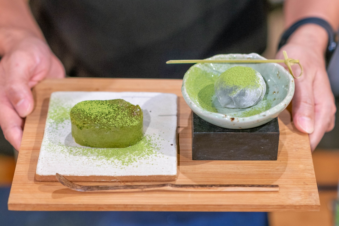 ต่อกันที่ WABI CHA ร้านขนมญี่ปุ่น ที่นำเข้าขนมญี่ปุ่นแท้จากร้านดังซึ่งตั้งอยู่ในทุกเมือง ตั้งแต่เหนือจรดใต้ อาทิ โอซาก้า, โอคายาม่า บินตรงมาให้คนไทยได้ลิ้มลองรสชาติแบบ original Japanese แล้ววันนี้ การนำเสนอขนมแต่ละเมนูเสมือนการได้เสพงานศิลป์เพราะทุกขั้นตอนในการผลิตทำขึ้นอย่างพิถีพิถันโดยเชฟชาวญี่ปุ่นผู้เชี่ยวชาญ โดย 2 เมนูที่อยากแนะนำคือ “ริกคิว มัทฉะ โมจิ” โมจิแป้งบางไส้เกาลัดญี่ปุ่นผสมกับอูจิมัทฉะเกรดพรีเมียม รสชาติหวานน้อย ชาวญี่ปุ่นนิยมรับประทานกับมัทฉะร้อนๆ ในพิธีชงชา และเมนู “อาโอยากิ มัทฉะ ชีสเค้ก” ชีสเค้กเนื้อซูเฟล่ ที่หอมอร่อยด้วยมัทฉะแท้จากอูจิ รสชาติเข้มข้นของมัทฉะเข้ากันดีกับชีสเค้กเนื้อละมุนได้อย่างลงตัว ทั้ง 2 เมนูนี้ผลิตโดยตระกูลที่เชี่ยวชาญในการผลิตชาเขียว และมัทฉะ ซึ่งดำเนินกิจการมากว่า 170 ปี ในโอซาก้า ประเทศญี่ปุ่น