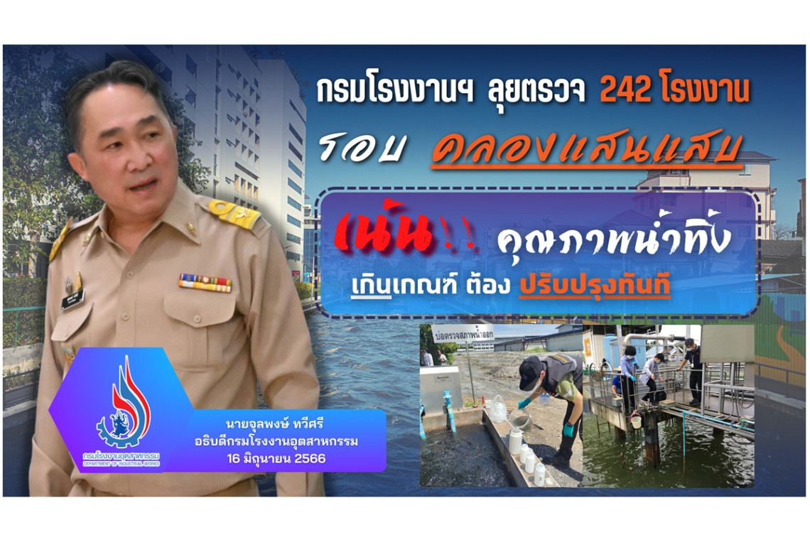กรมโรงงานอุตสาหกรรมลุยตรวจ 242 โรงงานรอบคลองแสนแสบในพื้นที่ 20 เขตของ กทม. ตั้งเป้าตรวจติดตาม กำกับและเฝ้าระวังคุณภาพน้ำทิ้งจากโรงงานอุตสาหกรรม เพื่อให้เป็นไปตามประกาศกระทรวงอุตสาหกรรม เรื่อง มาตรฐานควบคุมการระบายน้ำทิ้งจากโรงงาน พ.ศ.2560 หากเกินเกณฑ์มาตรฐานต้องปรับปรุงทันที