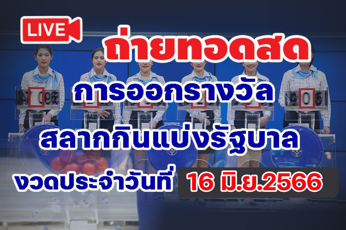 รับชมการถ่ายทอดสด ผลสลากกินแบ่งรัฐบาล งวดประจำวันที่ 16 มิถุนายน 2566 หวยงวดนี้ จากสำนักงานสลากกินแบ่งรัฐบาล ตรวจหวย ร่วมลุ้นรางวัลที่ 1 เลขท้าย 2 ตัว เลขท้าย 3 ตัวและรางวัลอื่นๆ ไปพร้อมๆกัน