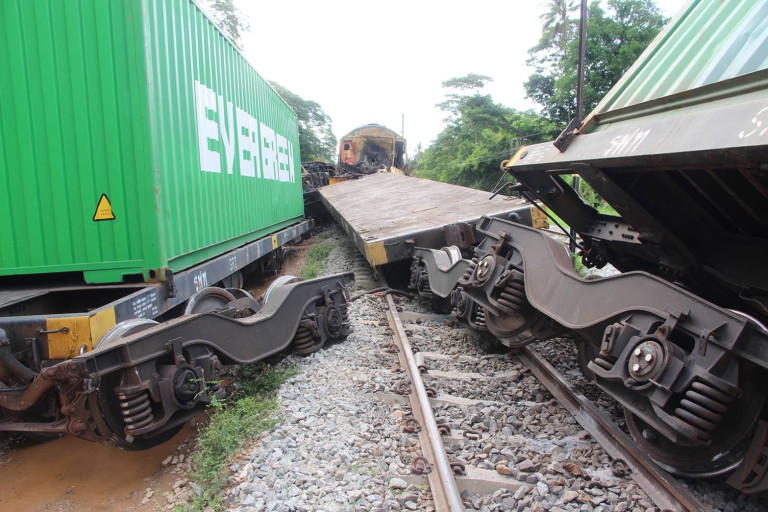 จากการสอบถามในเบื้องต้นทราบว่าขบวนรถไฟขบวนบรรทุกสินค้า ที่725 เลขข้างรถ 4222 หัวรถจักรบุรฉัตร 2 รับสินค้ามาจากท่าเรือแหลมฉบัง จ.ชลบุรี จะไปส่งที่ท่าศาลา อ.ท่าม่วง จ.กาญจนบุรี ส่วนขบวนตู้สินค้าบรรทุกกระดาษที่ขนลงแล้วอีกขบวนจอดรออยู่เพื่อรอลากส่งกลับลาดกระบัง ซึ่งขณะนี้เจ้าหน้าที่เร่งประสานหน่วยที่เกี่ยวข้องเพื่อเครียเส้นทางเพื่อเป็นที่เดินรถ เนื่องจากมีเพียง 2 ตู้เท่านั้นที่เอียงขวางเส้นเดินรถรางที่ 1 คาดว่าจะสามารถเดินรถได้ตามปกติภาในวันนี้
