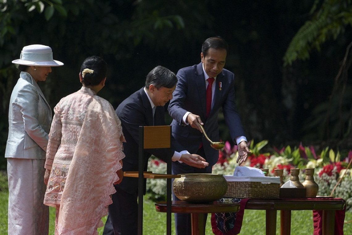 รายงานข่าวแจ้งว่า สมเด็จพระจักรพรรดินารุฮิโตะ พร้อมด้วยสมเด็จพระจักรพรรดินีมาซาโกะ ได้เสด็จพระราชดำเนินไปยังทำเนียบประธานาธิบดีอินโดนีเซีย ในกรุงจาการ์ตา เมืองหลวงของประเทศ ในการนี้สมเด็จพระจักรพรรดินารุฮิโตะ ทรงปลูกต้นไม้ที่ทำเนียบฯ โดยมีประธานาธิบดีวิโดโด ถวายน้ำล้างพระหัตถ์