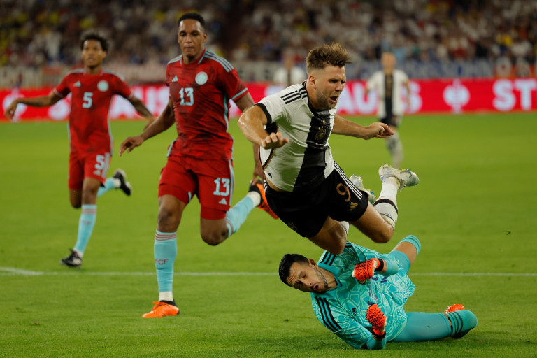 ที่สนาม เวลตินส์ อารีน่า ในการแข่งขันฟุตบอลนัดกระชับมิตร คืนวันที่ 20 มิ.ย.66 ระหว่างทีมชาติ "เยอรมนี" พบกับทีมชาติ "โคลอมเบีย" เริ่มเกมการแข่งขัน นาทีที่ 13 โคลอมเบีย มีโอกาสครั้งแรกจากฟรีคิกที่จ่ายออกไปทางขวาให้ กัวดราโด้ เปิดเข้ามาจบด้วย มีน่า โหม่งได้แต่โดนเฉือนๆออกหลัง นาทีที่ 19 เยอรมนี หาทางบุกได้ลุ้นที่จะมีโอกาสงามๆหลังบอลออกมาทางขวาให้กับ โวลฟ์ เลือกที่จะเปิดยาวเข้าเขตโทษไปเลยบอลหลุดมาหา โกเซนส์ จับบอลยาวไปนิดเลยอดยิง นาทีที่ 29 โคลอมเบีย เกือบได้ประตู จังหวะที่บอลถูกสกัดออกมานอกเขตโทษแล้ว มีน่า ขอวิ่งมาตะบันเต็มเหนี่ยวแต่ยังถูก สเตเก้น ปัดปลายมือบอลพุ่งหลุดสามเหลี่ยมหน่อยเดียว