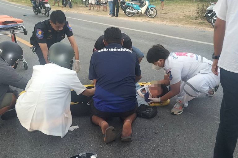 ในที่เกิดเหตุพบผู้บาดเจ็บนอนอยู่กลางถนนอาการสาหัส เจ้าหน้าที่กู้ภัยมูลนิธิสว่างบริบูรณ์ธรรมสถานเมืองพัทยาทำการปฐมพยาบาลก่อนนำส่งโรงพยาบาลบางละมุงทำการช่วยเหลือ ห่างกันเล็กน้อยพบรถซูซูกิสวิต สีขาว ทะเบียน ชลบุรี จอดอยู่สภาพด้านหน้าพังยับมีรถ จยย.ฮฮนด้าพีซ๊เอ็กซ์ สีน้ำเงินป้ายแดง ทะเบียน มิตรยนต์พัทยา สภ.เมืองพัทยา จอดคว่ำอยู่สภาพด้านหน้าพังยับ นอกจากนั้นยังพบผู้เสียชีวิตทราบชื่อนายณัฐวุฒิ อายุ 19 ปี นอนเสียชีวิตอยู่หน้ารถ ส่วนคนขับรถยนต์เก๋งทราบชื่อนางสาวศิริพร ายุ 35 ปี เจ้าหน้าที่ศูนย์เด็กเล็กเทศบาลตำบลโป่ง ยีนรอเจ้าหน้าที่ตำรวจด้วยอาการตกใจกับเหตุการณ์ดังกล่าว