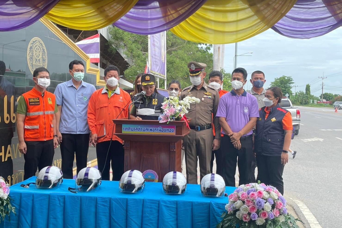 วันนี้ (21 มิถุนายน 2566) เวลา 08.30 น. ที่ ถนนทางหลวงหมายเลข 3064 บริเวณทางข้ามหน้าโรงเรียนแสวงหาวิทยาคม หมู่ที่ 7 ตำบลแสวงหา อำเภอแสวงหา นายรังสรรค์ ตันเจริญ ผู้ว่าราชการจังหวัดอ่างทอง มอบหมายให้นางสาวเอกรัตน์ นาคาคง รองผู้ว่าราชการจังหวัดอ่างทอง เป็นประธานการจัดกิจกรรมรณรงค์ความปลอดภัยทางถนน และการรณรงค์สวมหมวกนิรภัย 100 % โดยมี นายบรรจง โพธิวงศ์ หัวหน้าสำนักงานป้องกันและบรรเทาสาธารณภัยจังหวัดอ่างทอง หัวหน้าส่วนราชการ รอง ผบก.ภ.จว.อ่างทอง นายอำเภอแสวงหา ผู้อำนวยการโรงเรียนแสวงหาวิทยาคม ผู้บริหารองค์กรปกครองส่วนท้องถิ่น และหน่วยงานที่เกี่ยวข้องเข้าร่วมกิจกรรม