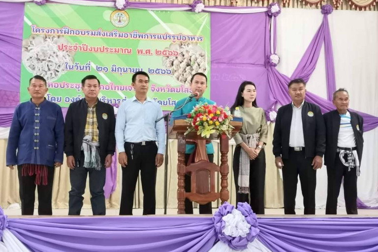 วันที่ 21 มิ.ย.66 เวลา 10.00 น.ที่หอประชุมอำเภอไทยเจริญ จังหวัดยโสธร นายวิเชียร สมวงศ์ นายกองค์การบริหารส่วนจังหวัดยโสธรเป็นประธานเปิดโครงการฝึกอบรมส่งเสริมอาชีพการแปรรูปอาหาร ประจำปีงบประมาณ พ.ศ.2566 ตามที่องค์การบริหารส่วนจังหวัดยโสธรได้จัดขึ้นเพื่อพัฒนาองค์ความรู้ในการถนอมอาหาร การแปรรูปอาหาร (การทำแหนมเห็ด) ตามหลักวิชาการ เป็นการเพิ่มรายได้ ลดรายจ่าย พัฒนาคุณภาพชีวิตให้กับประชาชนในพื้นที่อำเภอไทยเจริญเกิดการแลกเปลี่ยนองค์ความรู้ แลกเปลี่ยนประสบการณ์ เพื่อนำไปประยุกต์ใช้ในชีวิตประจำวันซึ่งมีกลุ่มวิสาหกิจชุมชน กลุ่มอาชีพ ในเขตอำเภอไทยเจริญ จำนวน 200 เข้ารับการฝึกอบรมในครั้งนี้โดยมี รองนายก อบจ.ยโสธร เลขานุการนายก อบจ.ยโสธร สมาชิกสภาองค์การบริหารส่วนจังหวัดยโสธร หัวหน้าส่วนราชการองค์การบริหารส่วนจังหวัดยโสธร นายอำเภอไทยเจริญ ผู้บริหาร อบต.คำไผ่ อบต.ไทยเจริญ เข้าร่วมและเป็นขวัญและกำลังใจกับผู้เข้ารับการฝึกอบรมในครั้งนี้ด้วย