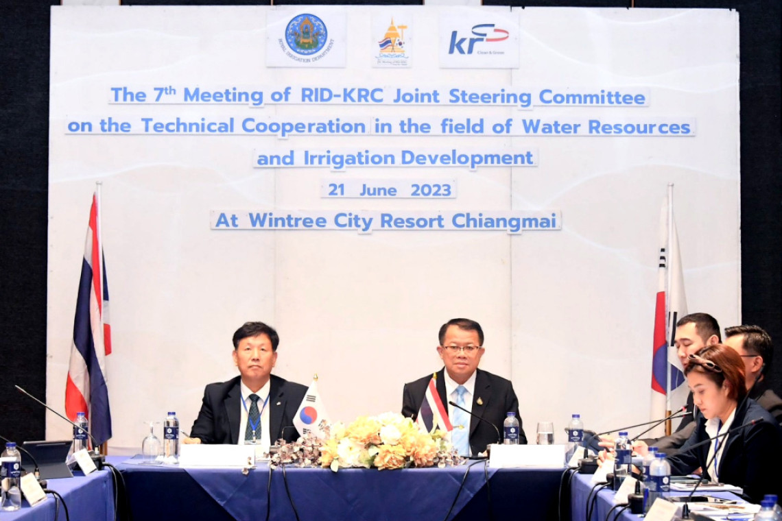 วันที่ 21 มิ.ย.66 ที่โรงแรมวินทรี ซิตี้ รีสอร์ท จังหวัดเชียงใหม่ ดร.ทวีศักดิ์ ธนเดโชพล รองอธิบดีกรมชลประทาน ประธานฝ่ายไทย และ Mr. Park Tae Seon ผู้อำนวยการบริหารการพัฒนาโครงสร้างพื้นฐานทางการเกษตร หน่วยงานพัฒนาชุมชนชนบทแห่งสาธารณรัฐเกาหลี (Korean Rural Community Corporation : KRC) ประธานฝ่ายเกาหลี ร่วมเป็นประธานการประชุมคณะกรรมการความร่วมมือทางวิชาการด้านการพัฒนาแหล่งน้ำและการชลประทาน ระหว่างกรมชลประทาน และหน่วยงาน KRC ครั้งที่ 7 (The 7th JSC Meeting) โดยมีนายวิทยา แก้วมี รองอธิบดีกรมชลประทาน และผู้แทนฝ่ายไทย พร้อมหน่วยงานที่เกี่ยวข้องเข้าร่วมประชุมในครั้งนี้ด้วย