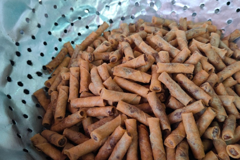 สำหรับวัตถุดิบหลักของปอเปี๊ยะจิ๋ว มีเนื้อปลา 80% แป้ง 14 %สมุนไพร 2% (สำหรับเครื่องสมุนไพรประกอบด้วย พริกแห้ง , ใบมะกรูด , หอมแดง , ขิง , ข่า , ตะไคร้) ผัดคลุกเคล้ากันใช้เวลาทำไส้เลย 1 วันเต็ม จากนั้นมานั่งห่อกันและทอดซับน้ำมันจนแห้ง ก่อนนำมาเพ็คใส่บรรจุภัณฑ์ ขายออกบูธครั้งละ 1,000 กล่อง หากซื้อราคาส่งกิโลกรัมละ 300 บาท หรือ กระปุก 100 บาท ส่วนขนมผูกรักครึ่งกิโล 110 บาท กิโลกรัมละ 220 บาท