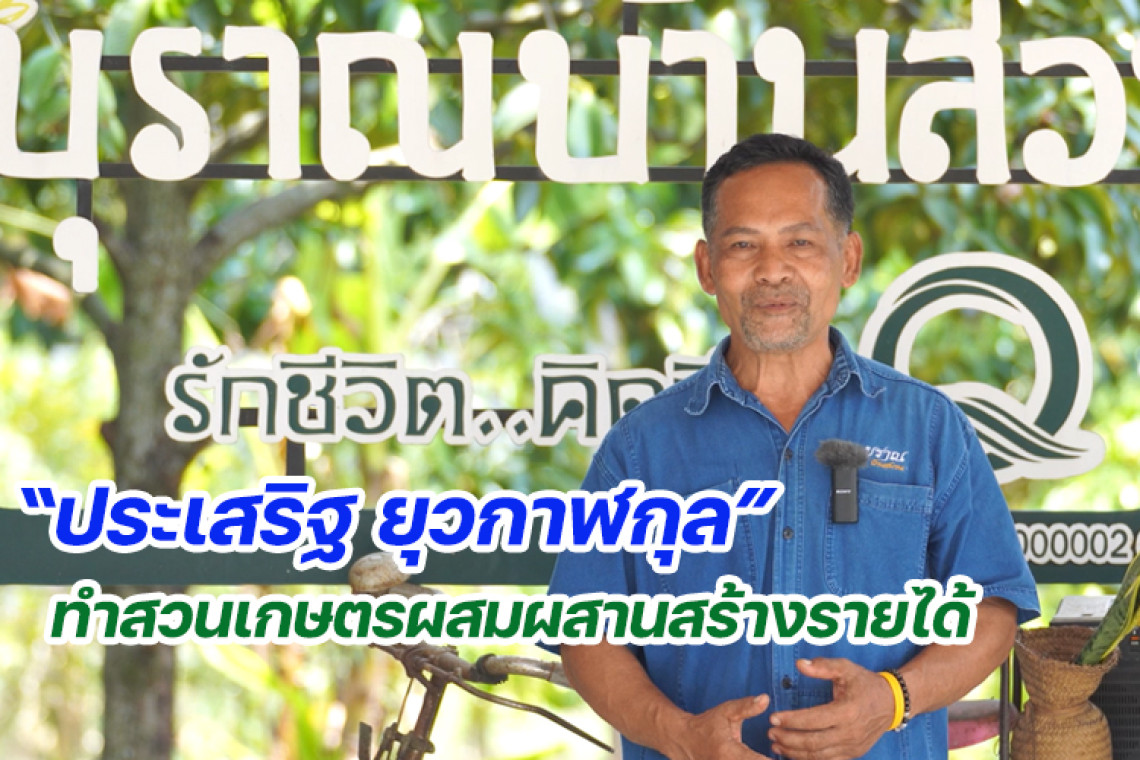 คุณประเสริฐ ยุวกาฬกุล เจ้าของบุราณบ้านสวน วิสาหกิจชุมชนการเกษตรแห่งบางสะพาน จ.ประจวบคีรีขันธ์ ผู้ที่ไม่ย่อท้อต่ออุปสรรค มุ่งมั่น ตั้งใจประกอบอาชีพด้วยความอุตสาหะอดทนในการทำสวนเกษตรผสมผสาน สร้างรายได้สู่สมาชิก และคนชุมชนได้อย่างยั่งยืน