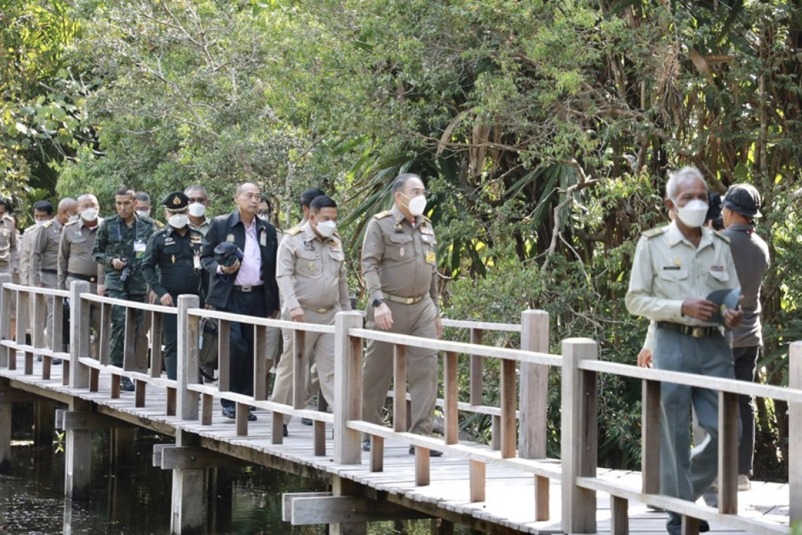 พลเอก กัมปนาท รุดดิษฐ์ องคมนตรี ประธานอนุกรรมการติดตามและขับเคลื่อนโครงการอันเนื่องมาจากพระราชดำริในพื้นที่ภาคใต้ เยี่ยมชมผลสัมฤทธิ์โครงการบริหารจัดการป่าพรุโต๊ะแดง จังหวัดนราธิวาส