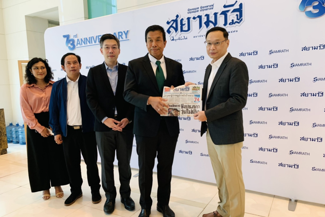 วันที่ 23 มิ.ย.2566 นายชัชชาติ สิทธิพันธุ์ ผู้ว่าราชการกรุงเทพมหานคร ร่วมแสดงความยินดีกับสยามรัฐในโอกาสครบรอบ 73 ปี โดยมี นายวิโรจน์ วัฒนธาดากุล บรรณาธิการบริหาร และจินตนา จันทร์ไพบูลย์ บรรณาธิการข่าวหนังสือพิมพ์สยามรัฐ และคณะผู้บริหารสยามรัฐ ให้การต้อนรับ ณ อาคารสำนักงานสยามรัฐ สะพานพระราม 8