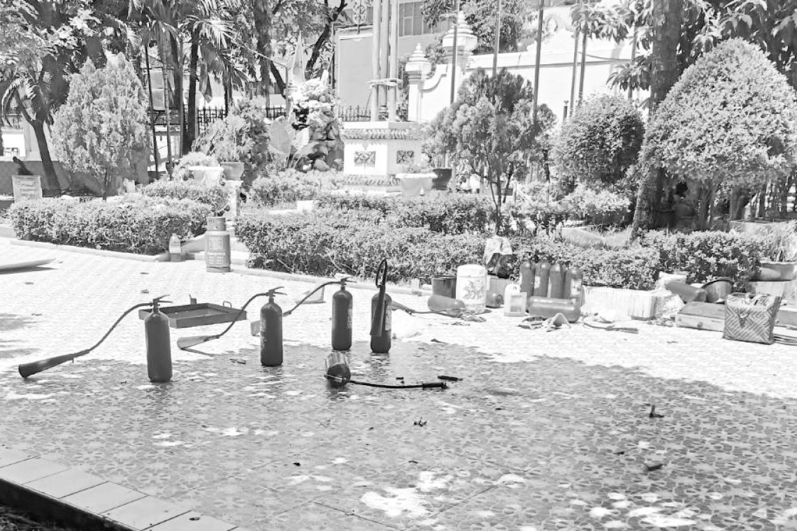 (1) เหตุการณ์ที่เกิดขึ้นมีที่มาจากหน่วยงานภายนอกที่เข้ามาทำการซักซ้อมนักเรียนในการรับมือกับเหตุเพลิงไหม้ โดยมีการนำทั้งถังดับเพลิงที่จะนำมาใช้งานจริง และถังที่จะไม่ได้ใช้ในการซ้อมจริงมาประกอบการสาธิตด้วย