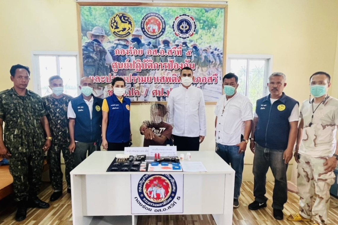 วันที่ 27 มิ.ย.66 ผู้สื่อข่าวรายงานว่า ภายใต้การอำนวยการของนายพิศิษฐ์ ฤทธิพิชัยสงคราม นายอำเภอสวี นางสาวนนท์ลภัส ชูสอน ปลัดอำเภอหัวหน้ากลุ่มงานบริหารงานปกครอง ชุดจับกุมนำโดย นายบุญก้อง ศรีสงคราม ปลัดอำเภอหัวหน้าฝ่ายความมั่นคงอำเภอสวี นายดารากร จันทนา ปลัดอำเภอฝ่ายความมั่นคง นายโชคชัย เกตุแก้ว ผู้ใหญ่บ้านหมู่ที่2 ต.เขาค่าย นายสุธรรม สุขใสย ผู้ใหญ่บ้านหมู่ที่3 ต.เขาค่าย, นายภัทรดร ซั่วเซ่งอี่ ผู้ช่วยผู้ใหญ่บ้านหมู่ที่7 ต.ทุ่งระยะ, เจ้าหน้าที่ศป.ปส.อ.สวี และสมาชิก อส.อ.สวี ที่5 ร่วมกันจับกุมตัวผู้ต้องหาคดียาเสพติด ในพื้นที่ ต.สวี อ.สวี จ.ชุมพร และพื้นที่ตำบลนาสัก